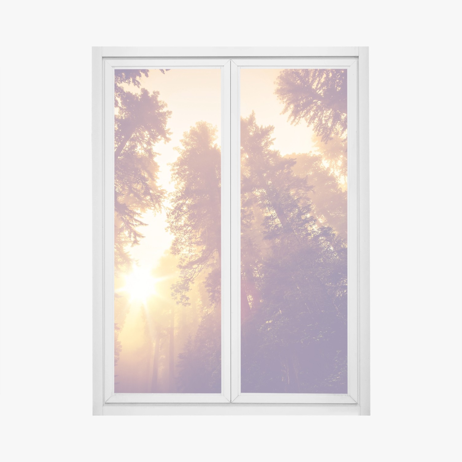 Adesivo per finestra Foresta incantata al chiarore dorato