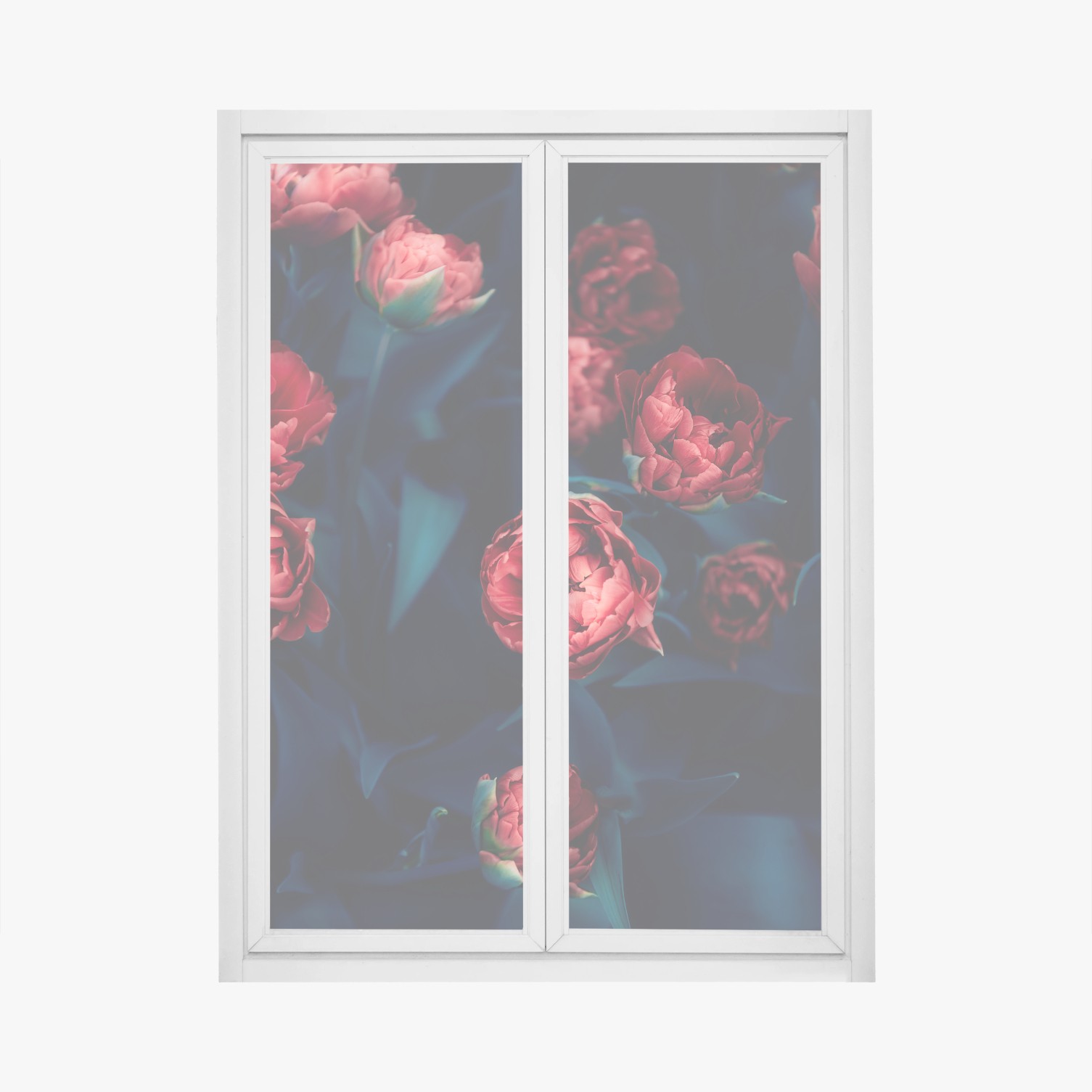 Adesivo per finestra Fiori rossi su sfondo scuro