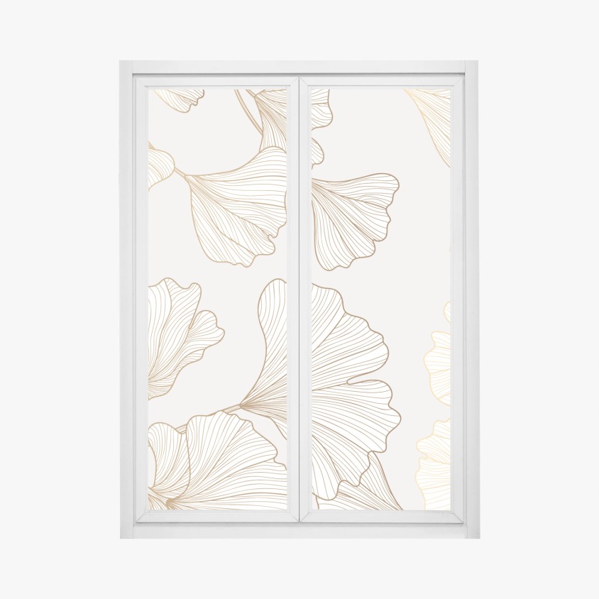 Adesivo per finestra Foglie di ginkgo dorate su fondo chiaro