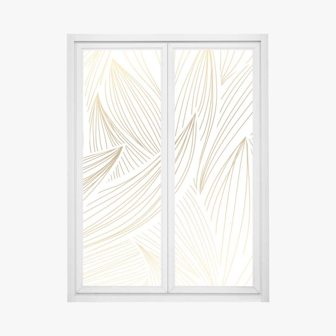 Adesivo per finestra Motivo foglie dorate su sfondo bianco