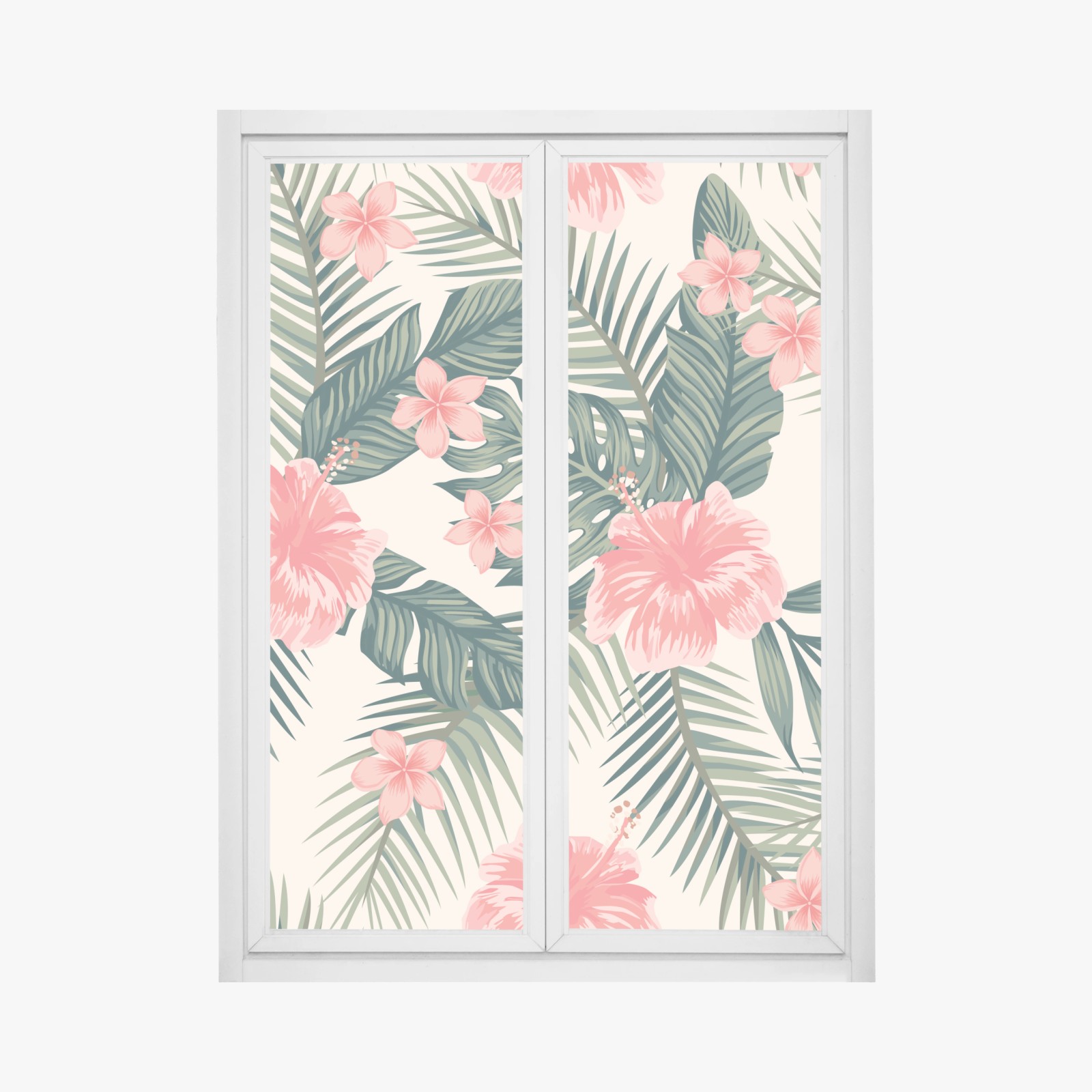 Adesivo per finestra Motivo tropicale con ibischi rosa