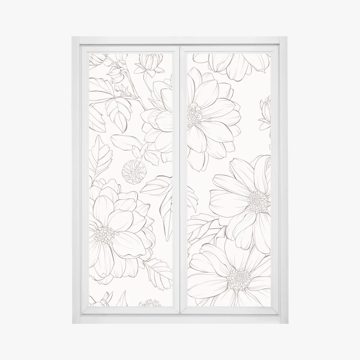 Adesivo per finestra Motivo floreale a linee sottili su sfondo chiaro