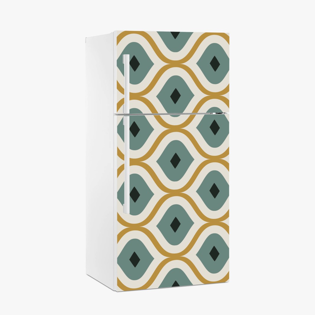 Adesivo per frigorifero Motivo geometrico retrò in toni verdi e senape