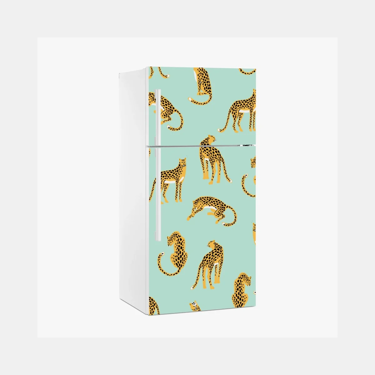 Adesivo per frigorifero Ghepardi su sfondo verde menta