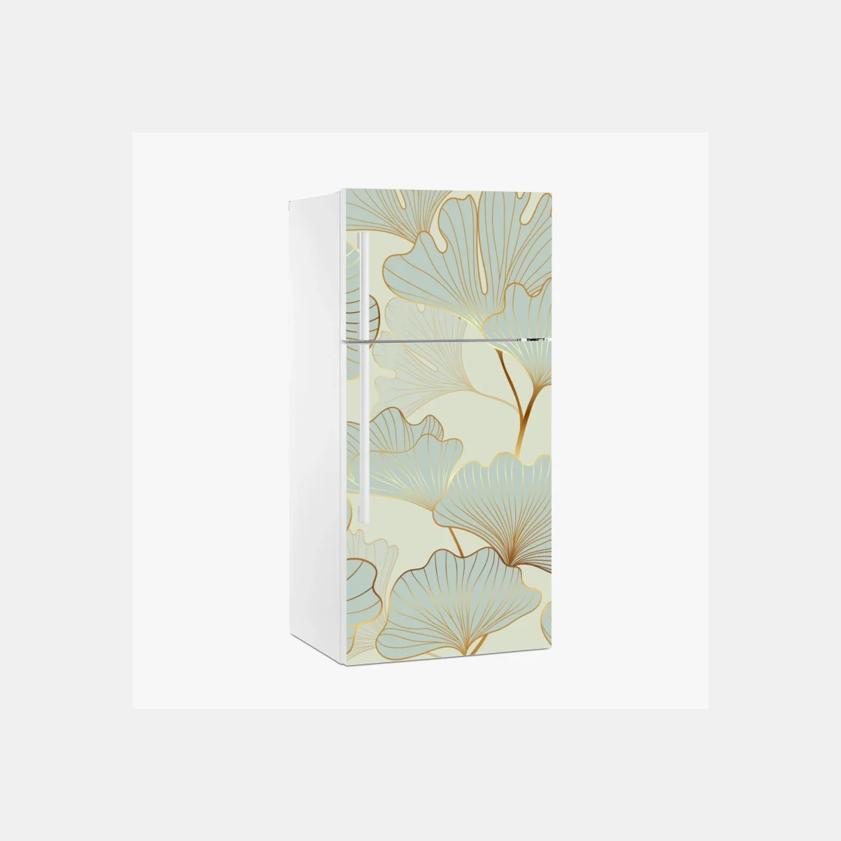 Adesivo per frigorifero Motivo elegante di foglie di ginkgo con dettagli dorati