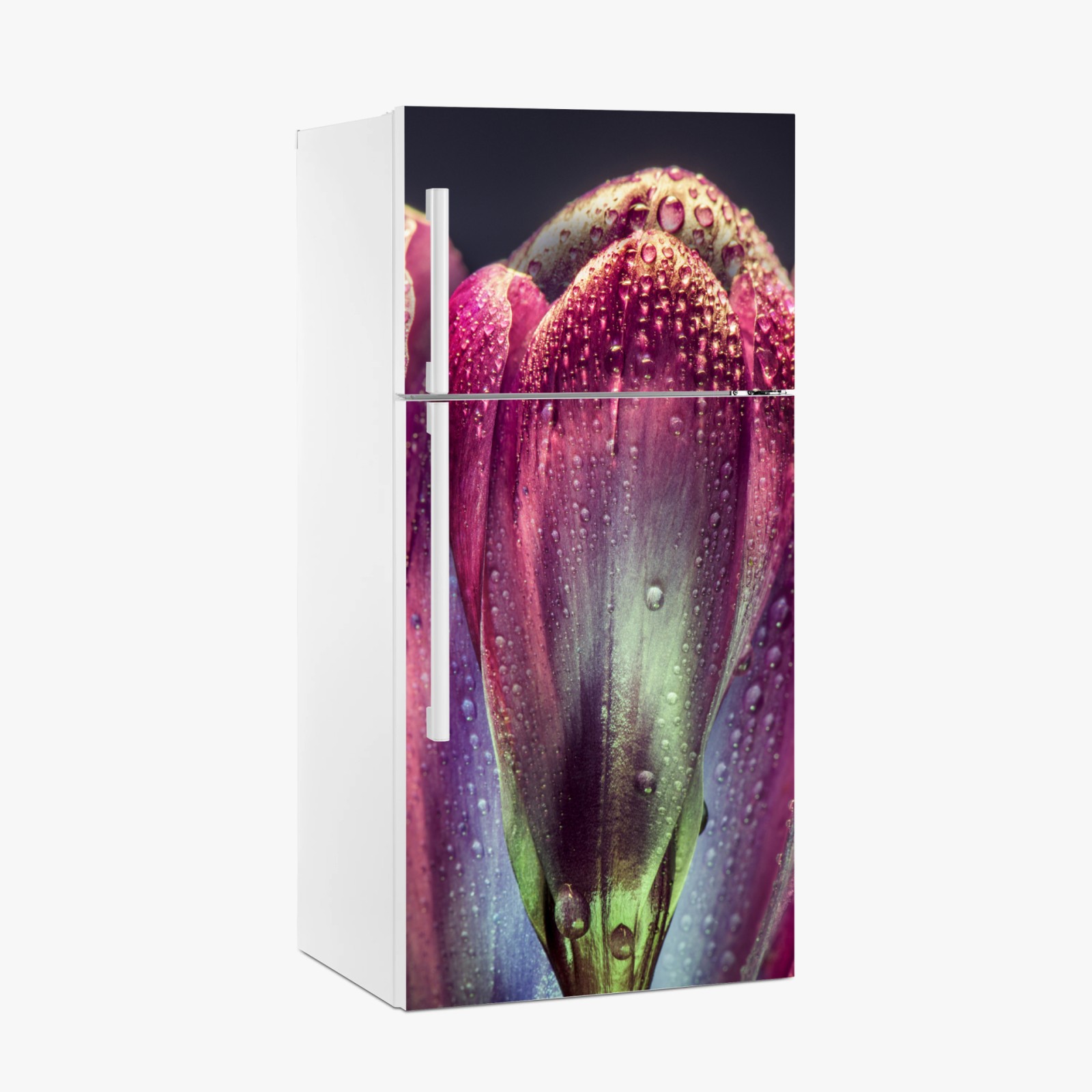 Adesivo per frigorifero Bocciolo viola con gocce di rugiada
