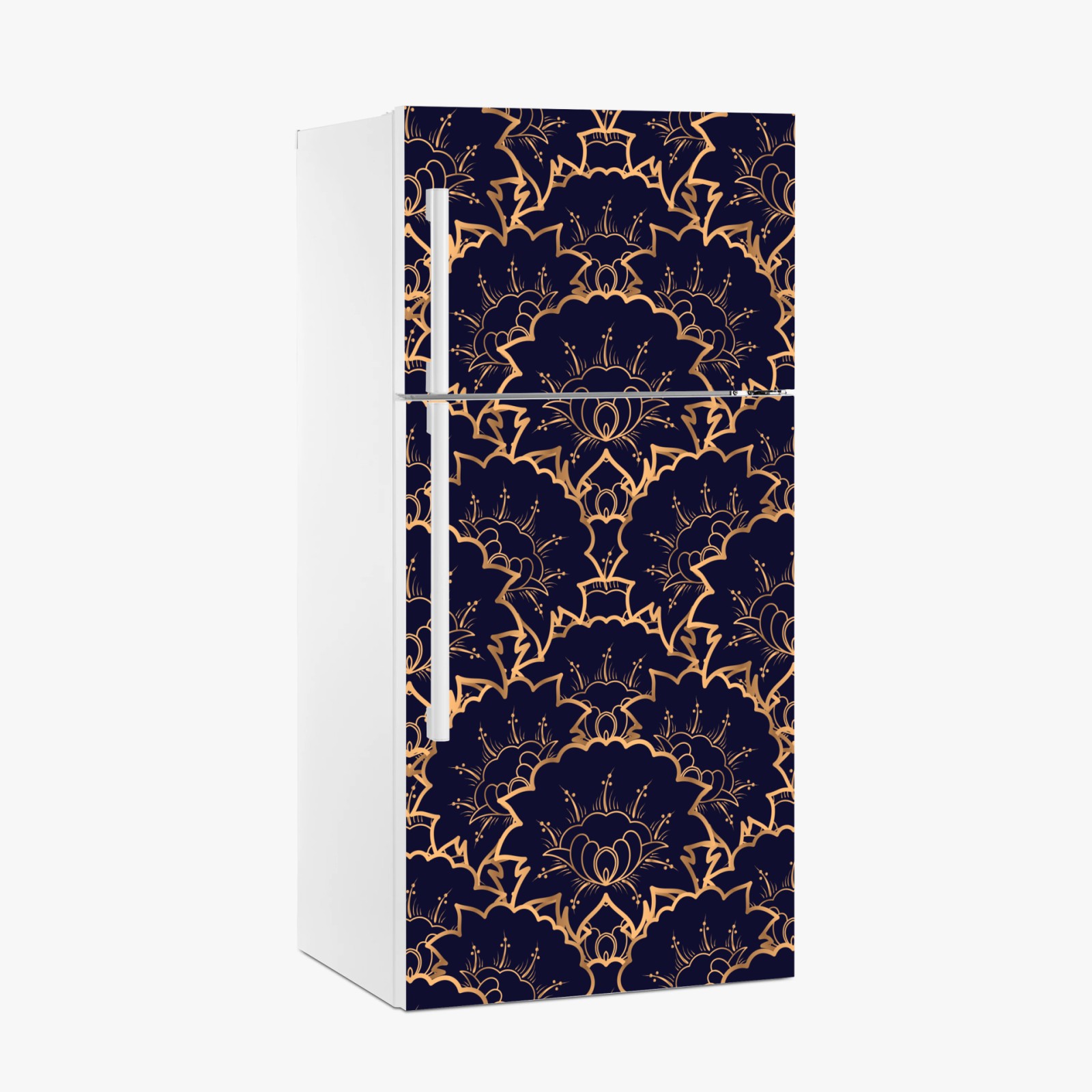 Adesivo per frigorifero Eleganza ornamentale dorata su blu notte