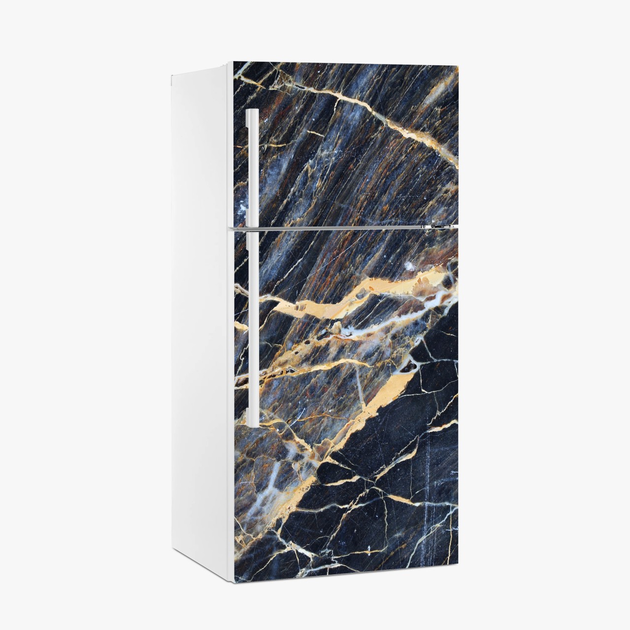 Adesivo per frigorifero Marmo blu scuro con venature dorate e crema