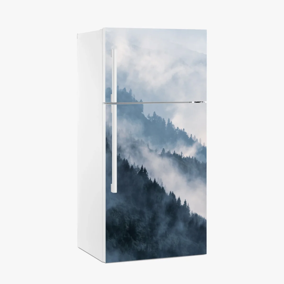 Adesivo per frigorifero Foresta nebbiosa tra le vette