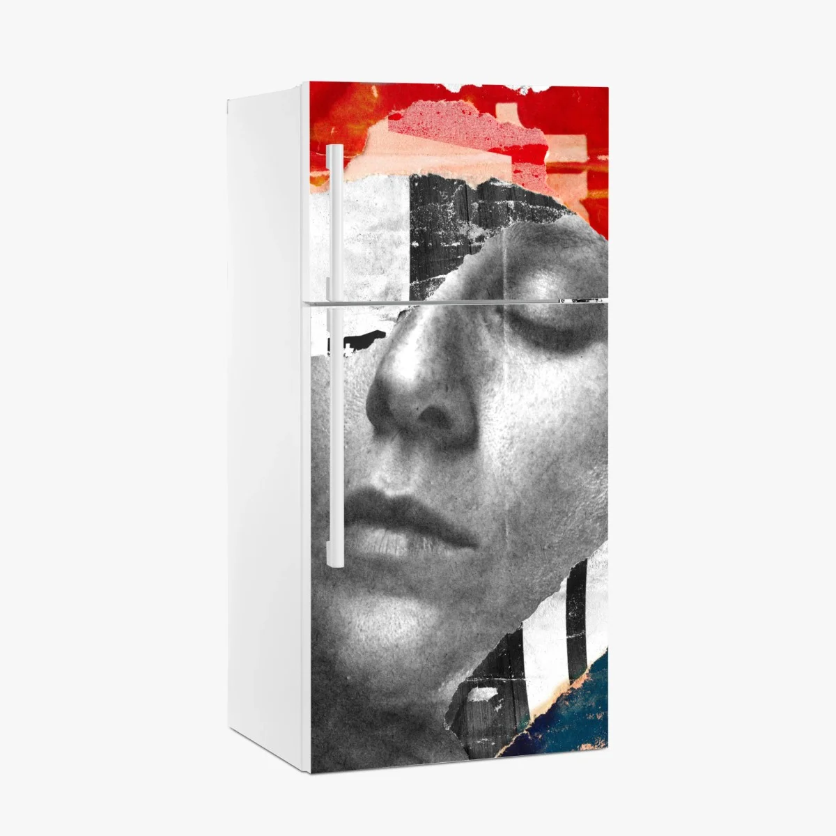 - colori vivaci, bianco e nero, texture, design moderno, arte contemporanea, ritratto, collage, volto, occhi chiusi, carta strappata