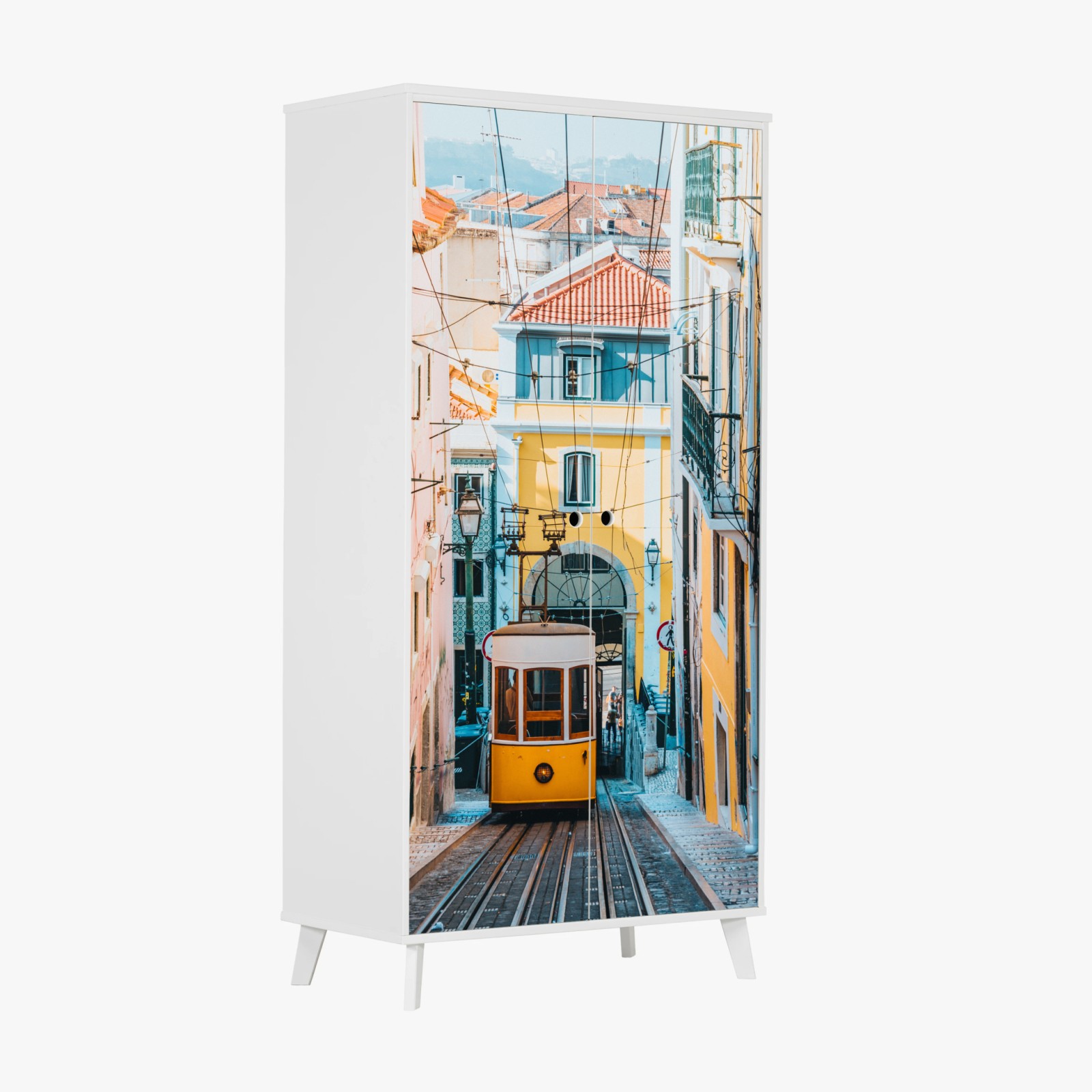 Adesivo per armadio Scorcio del tram di Bica a Lisbona