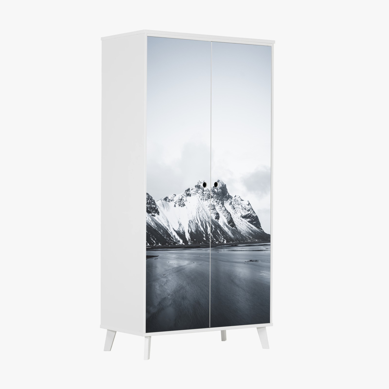 Adesivo per armadio Paesaggio montano innevato in bianco e nero