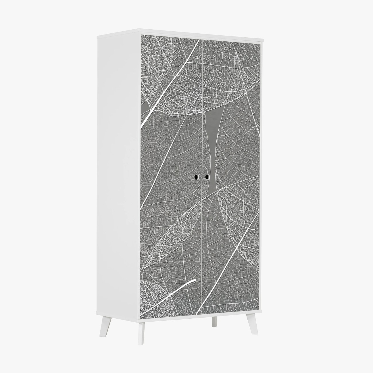 Adesivo per armadio Motivo di foglie scheletrate su sfondo grigio