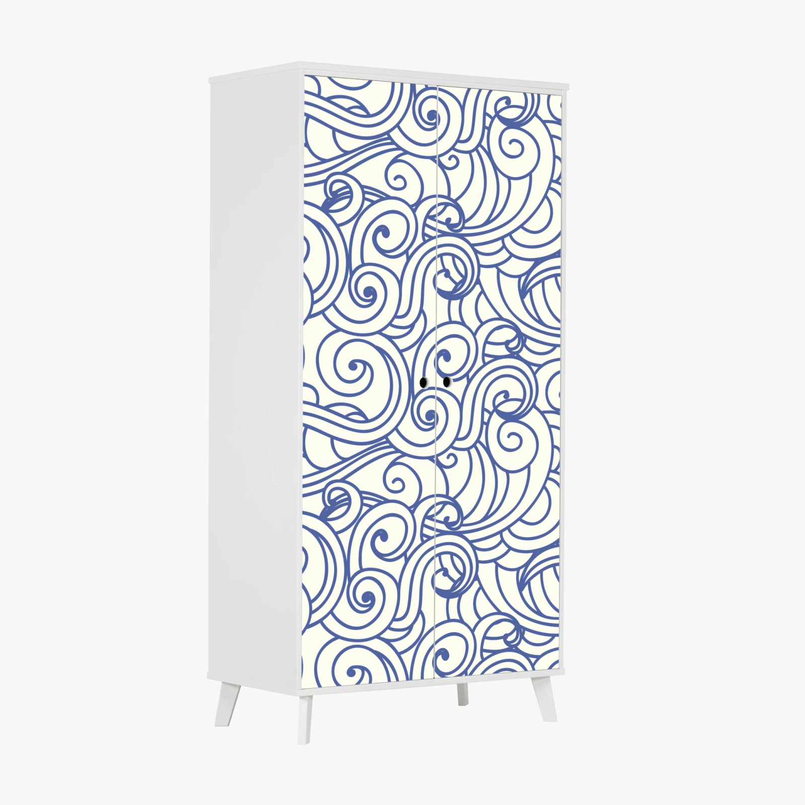 Adesivo per armadio Onde stilizzate blu su sfondo crema