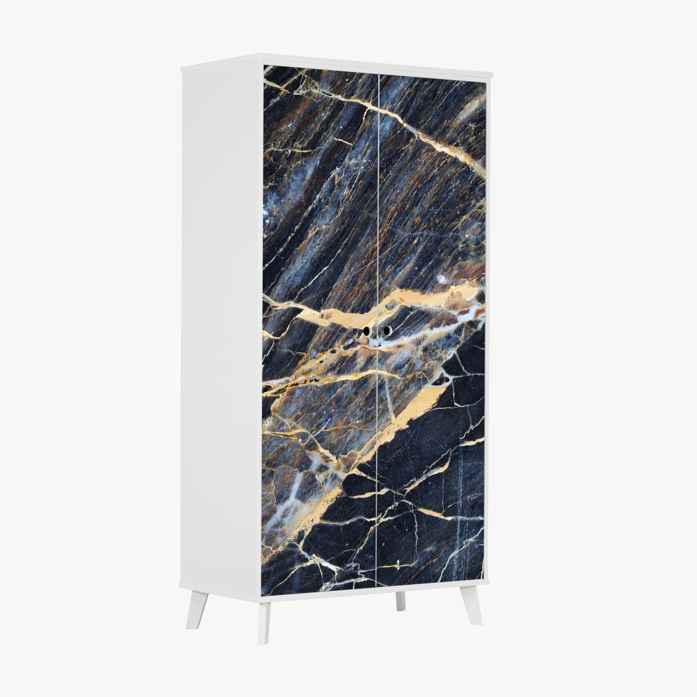 Adesivo per armadio Marmo blu scuro con venature dorate e crema