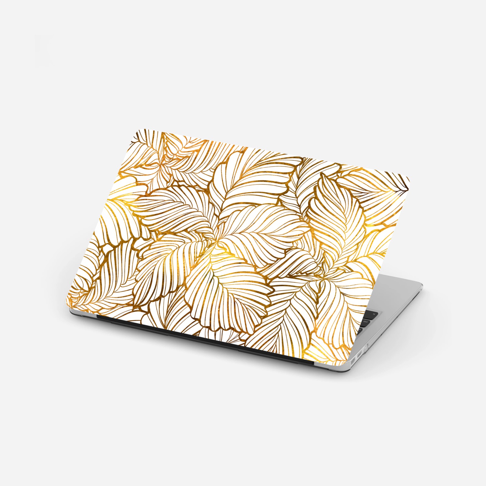 Adesivo per laptop Motivo di foglie dorate su sfondo bianco