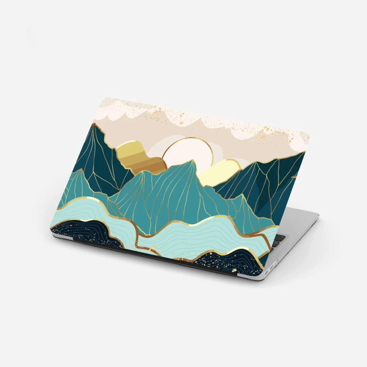 Adesivo per laptop Montagne dorate e onde astratte