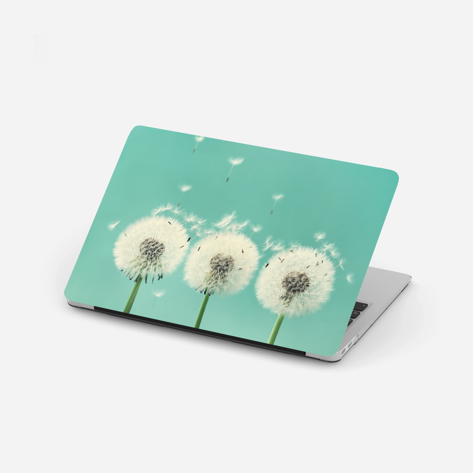 Adesivo per laptop Soffioni e piume in volo su sfondo turchese
