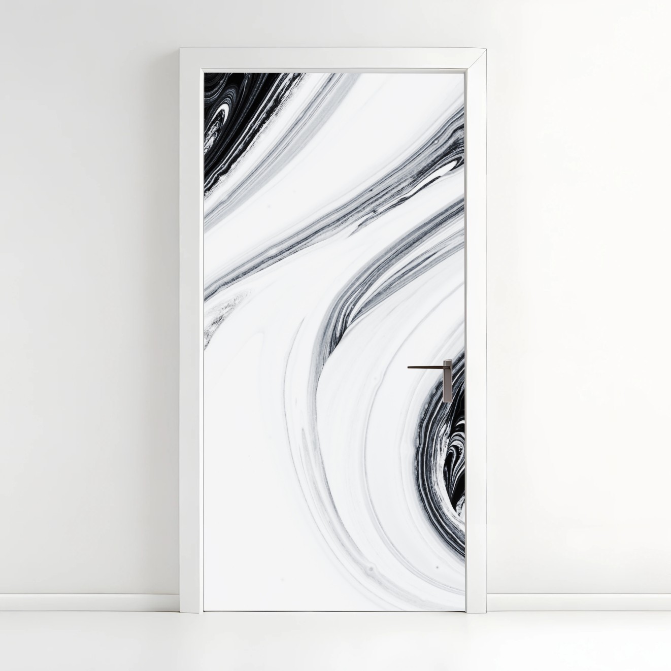 Adesivo per porta Eleganza marmorizzata in bianco e nero