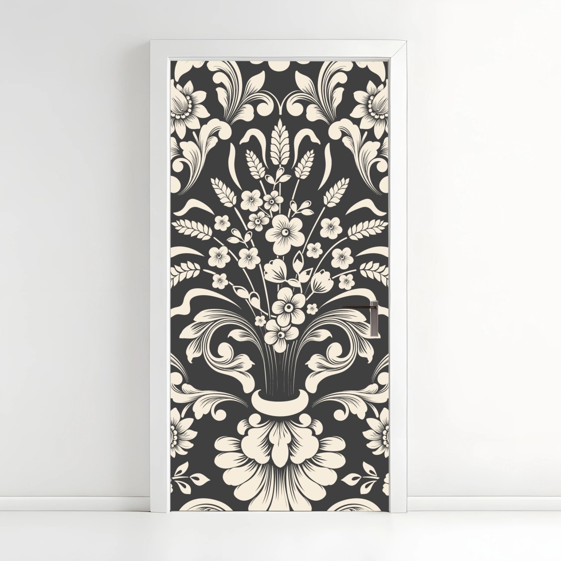 Adesivo per porta Motivo damascato floreale elegante su sfondo scuro
