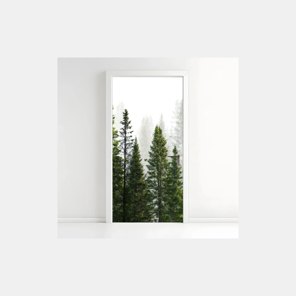 Adesivo per porta Foresta di abeti su sfondo bianco