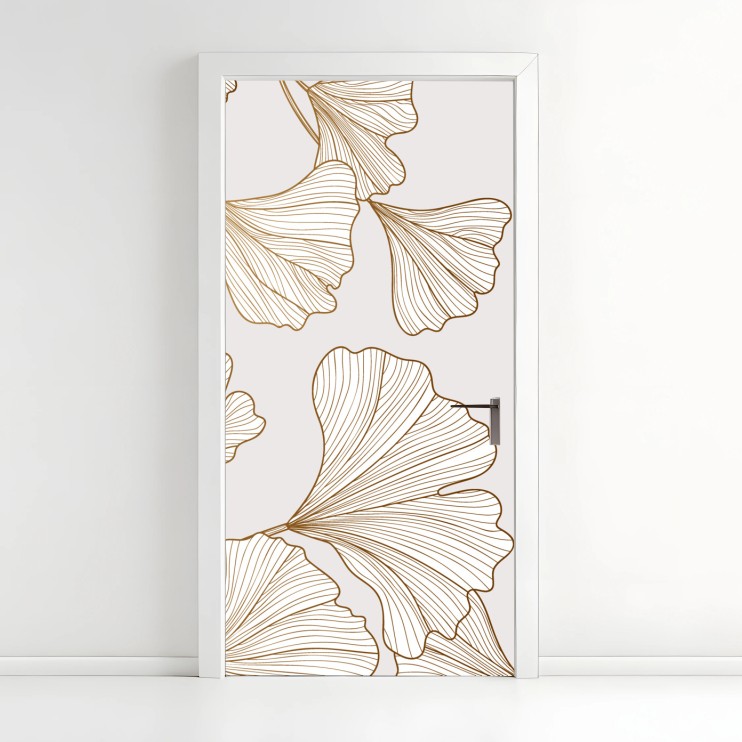 Adesivo per porta Foglie di ginkgo dorate su fondo chiaro