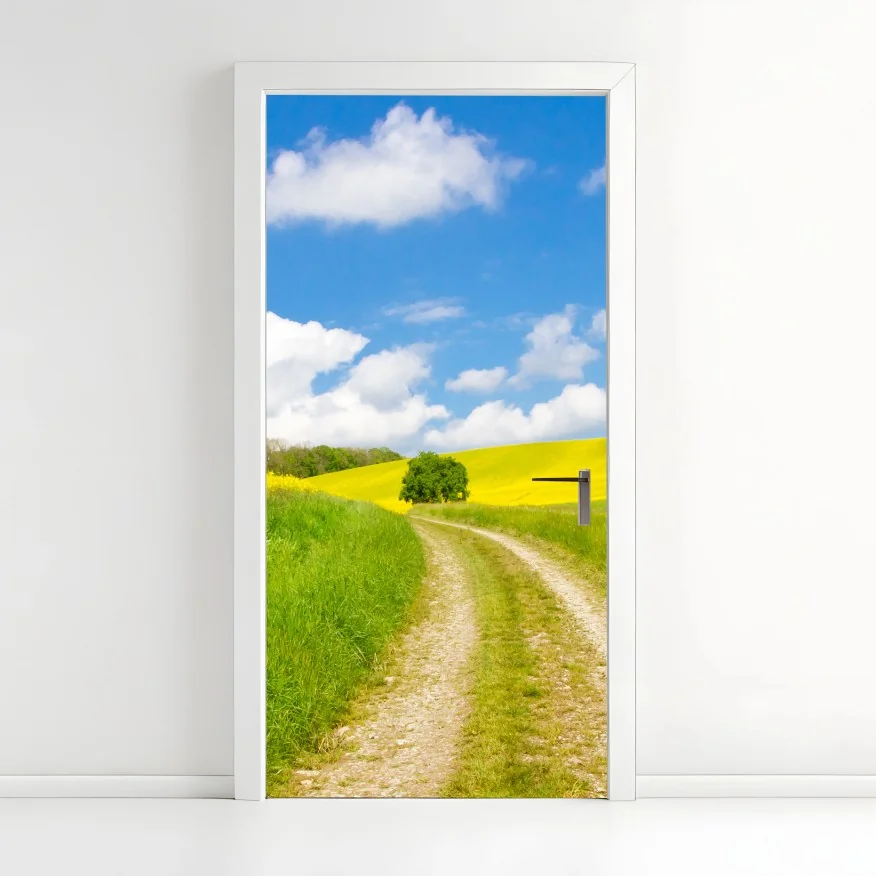 Adesivo per porta Sentiero tra i campi di colza e prati verdi