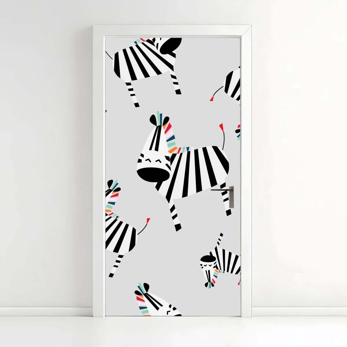 Adesivo per porta Zebre giocose su sfondo grigio