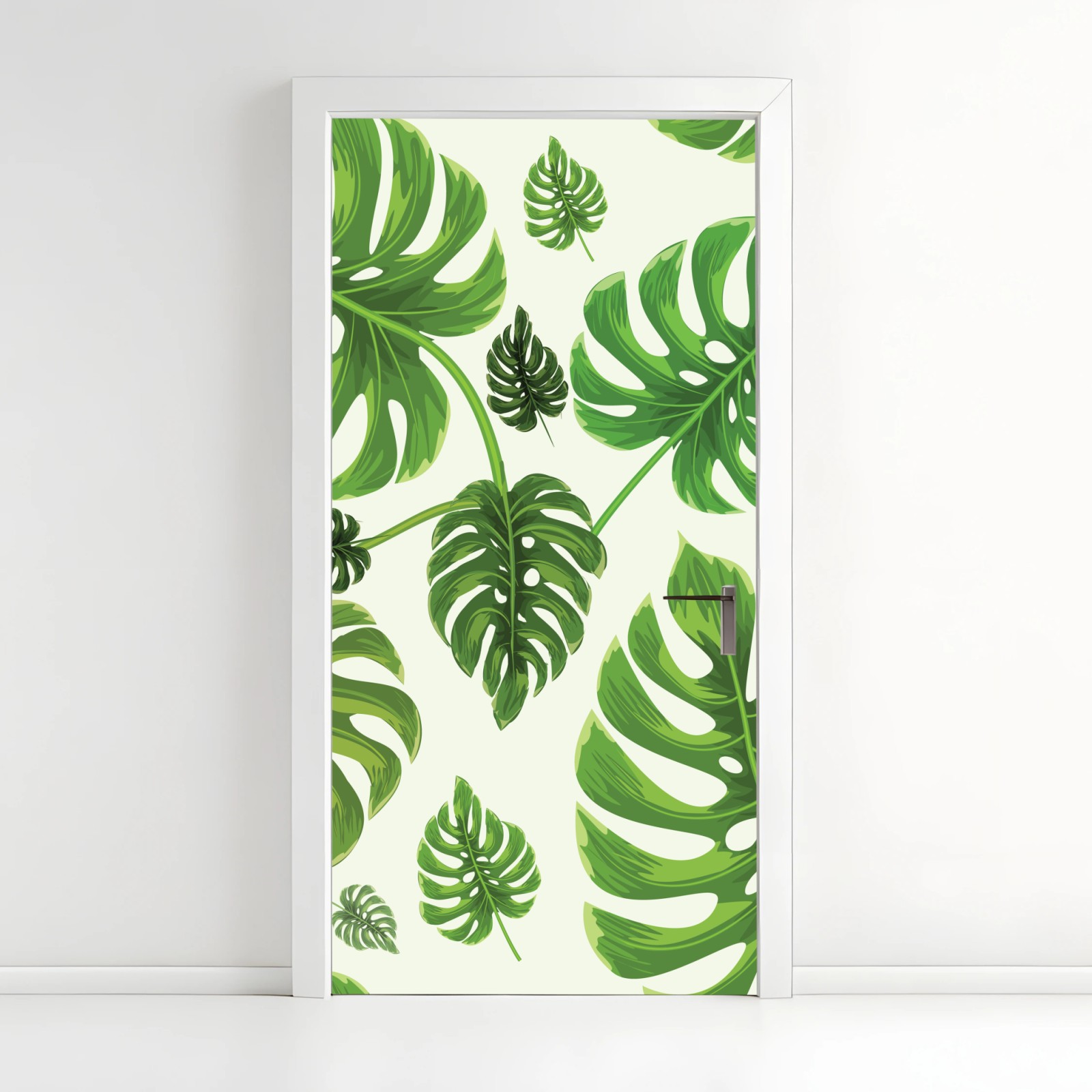 Adesivo per porta Motivo tropicale con foglie di monstera