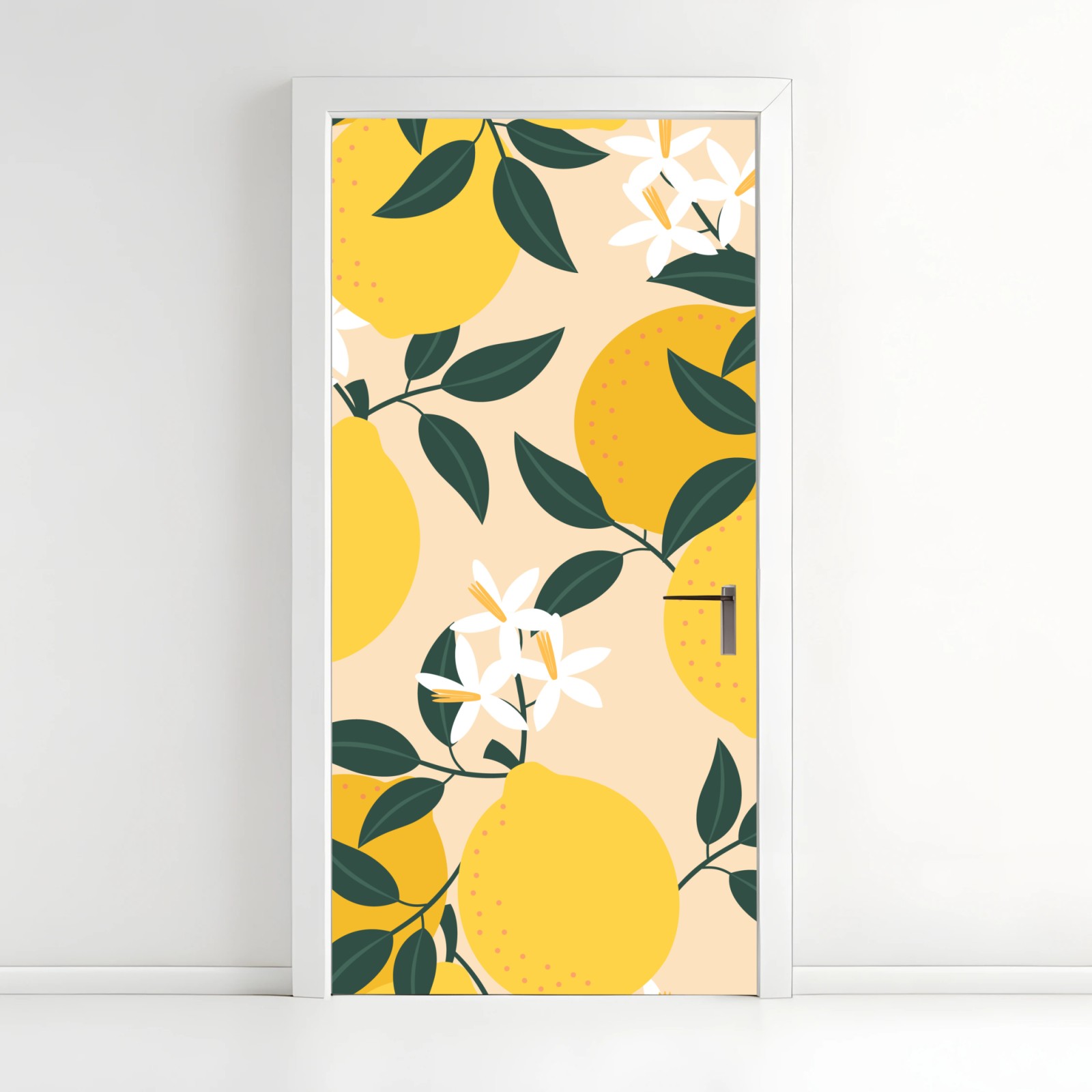 Adesivo per porta Motivo di limoni e fiori su sfondo beige