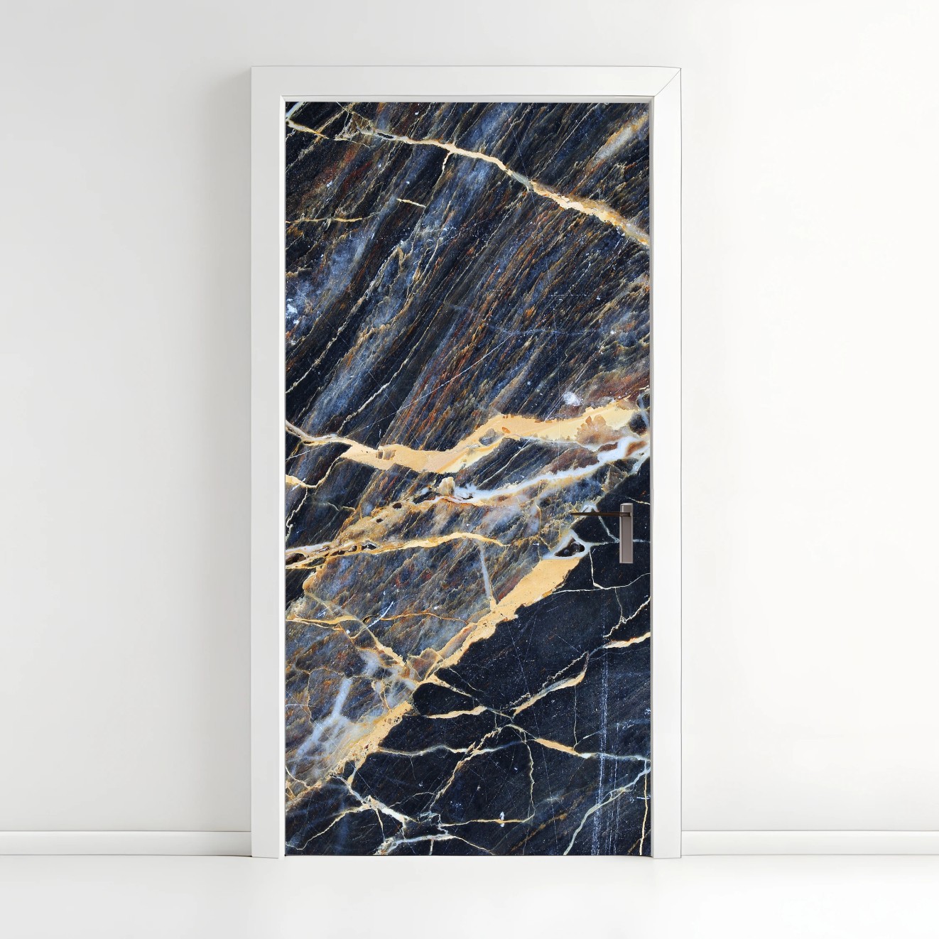 Adesivo per porta Marmo blu scuro con venature dorate e crema