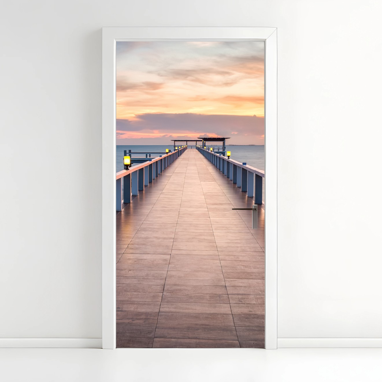 Adesivo per porta Passerella sul mare al tramonto
