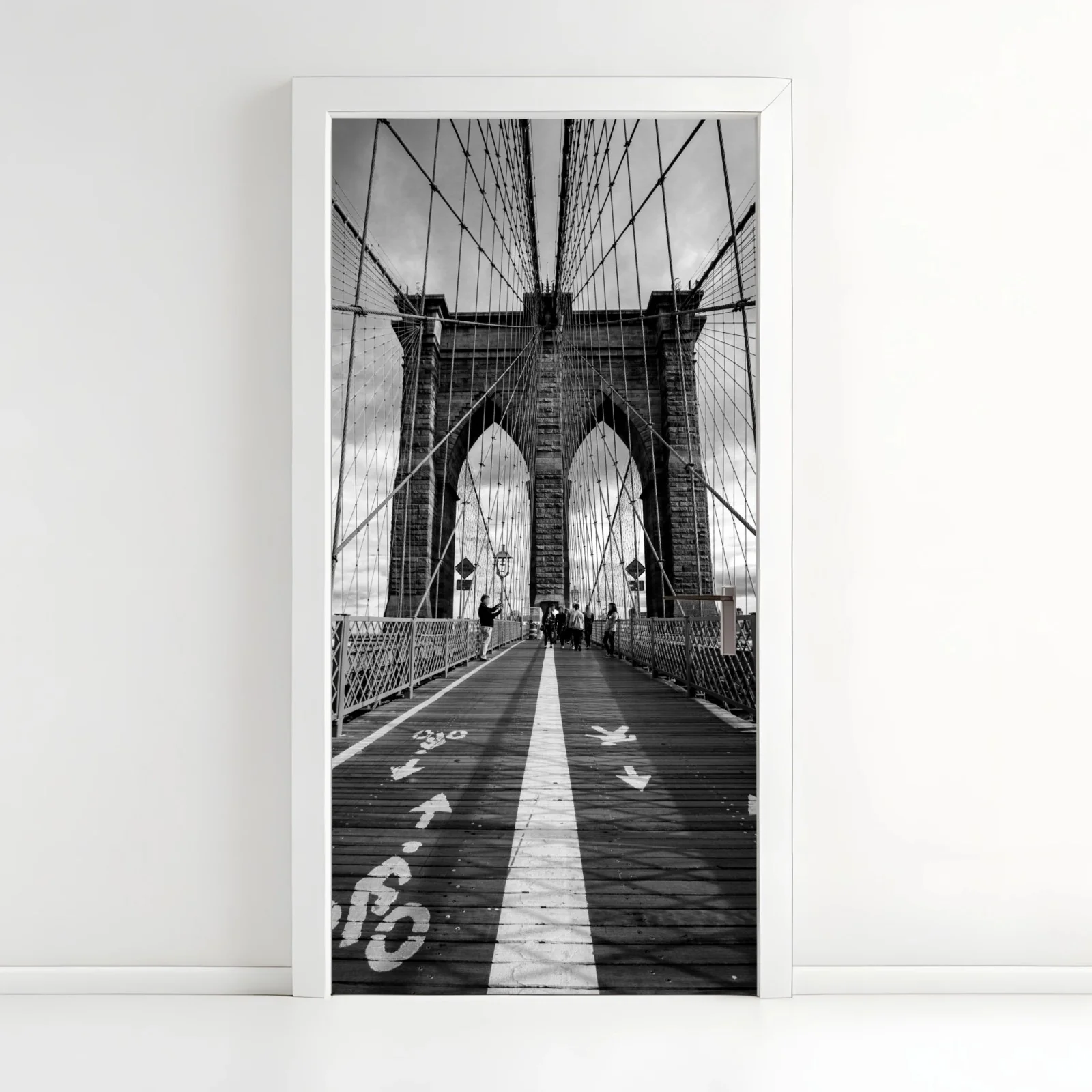 Adesivo per porta Ponte di Brooklyn: prospettiva in bianco e nero