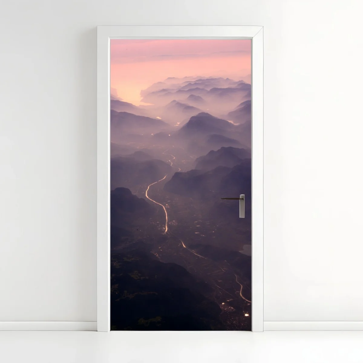Adesivo per porta Valle nebbiosa al crepuscolo