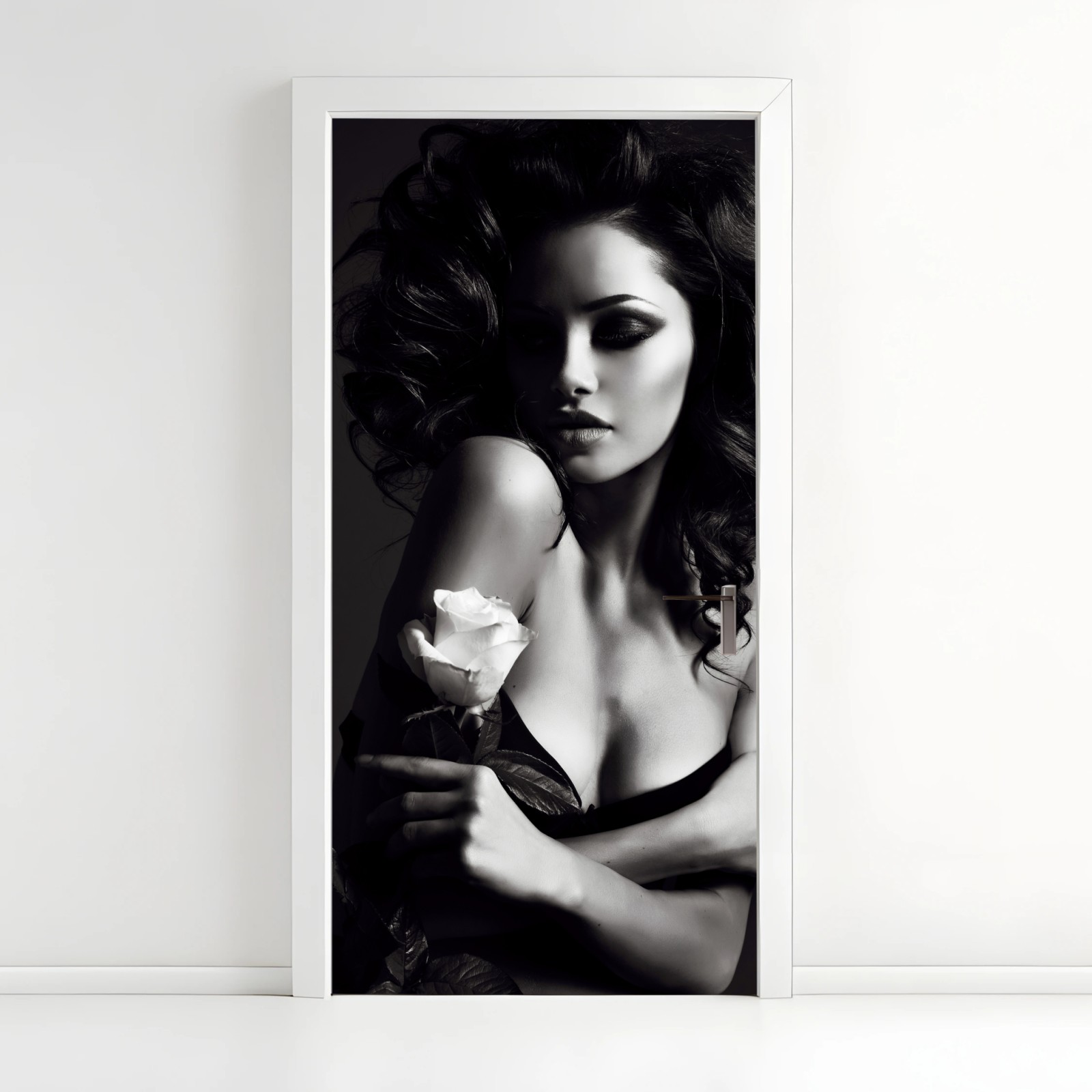 Adesivo per porta Eleganza senza tempo in bianco e nero