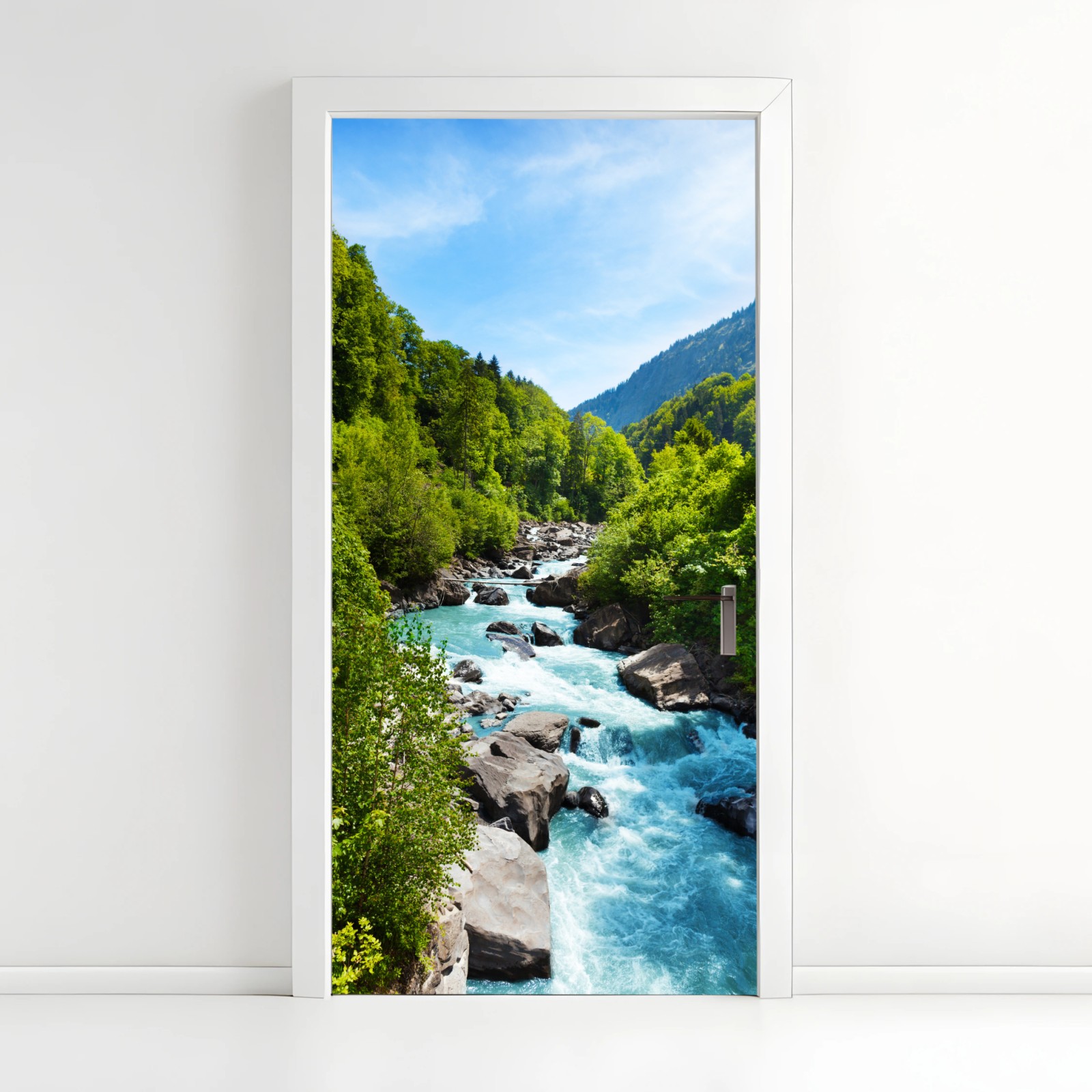 Adesivo per porta Fiume di montagna turchese tra le rocce