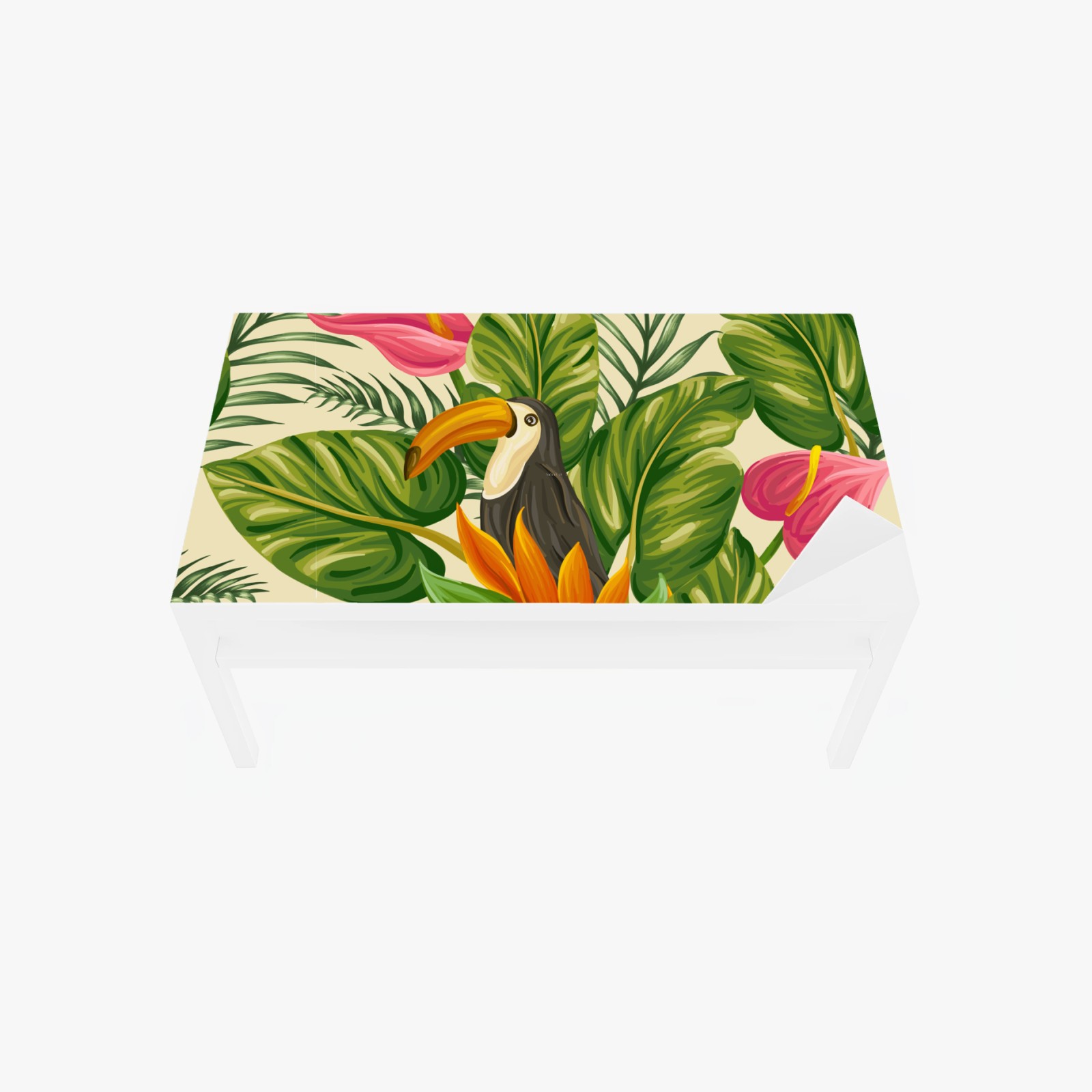Adesivo per tavolo e scrivania Giungla tropicale con tucano e fiori colorati