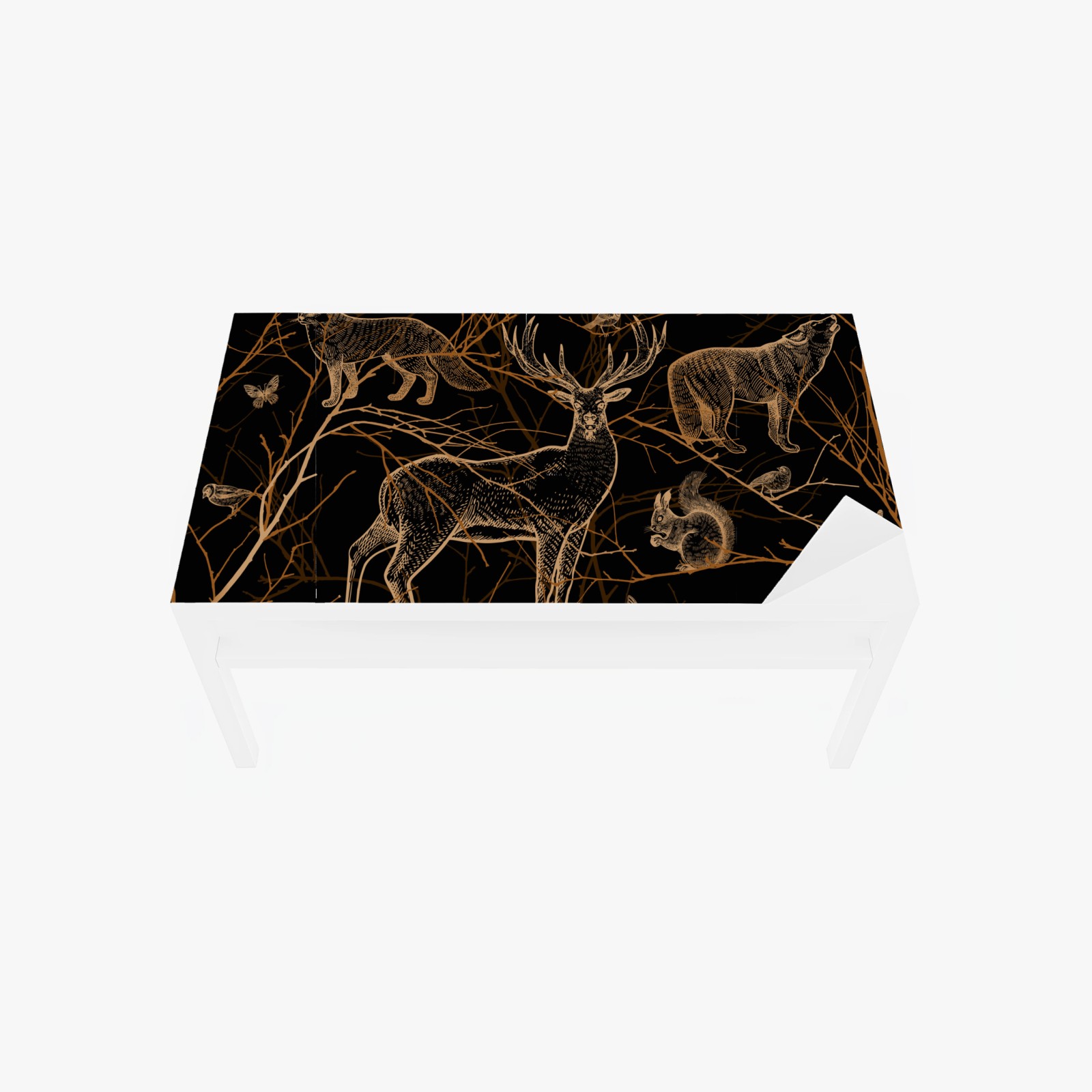 Adesivo per tavolo e scrivania Foresta dorata: animali selvatici su sfondo nero