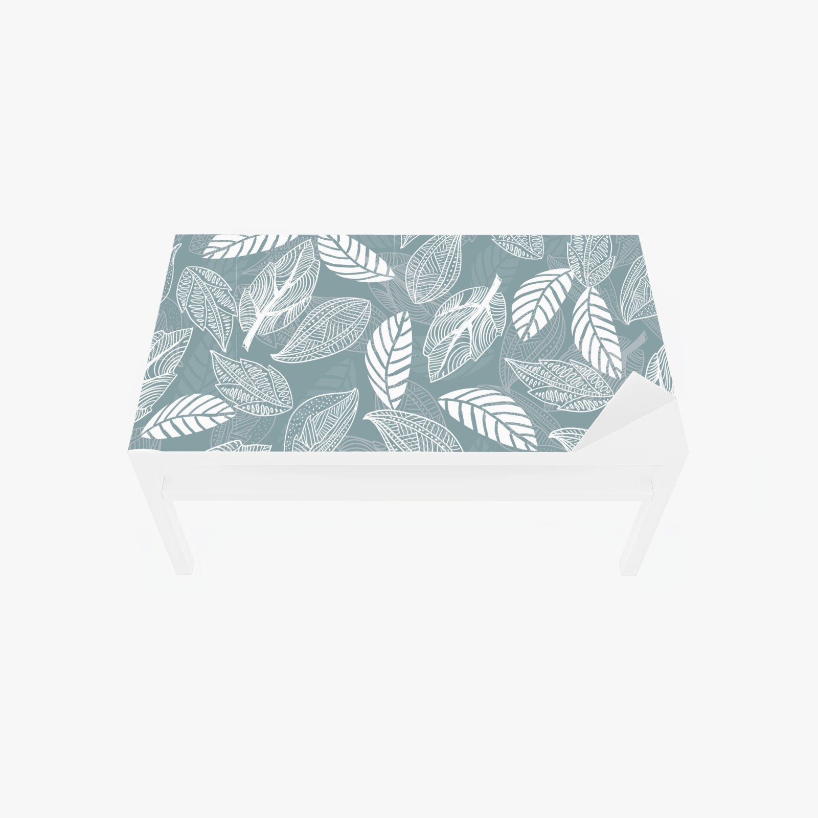 Adesivo per tavolo e scrivania Motivo foglie bianche su sfondo turchese