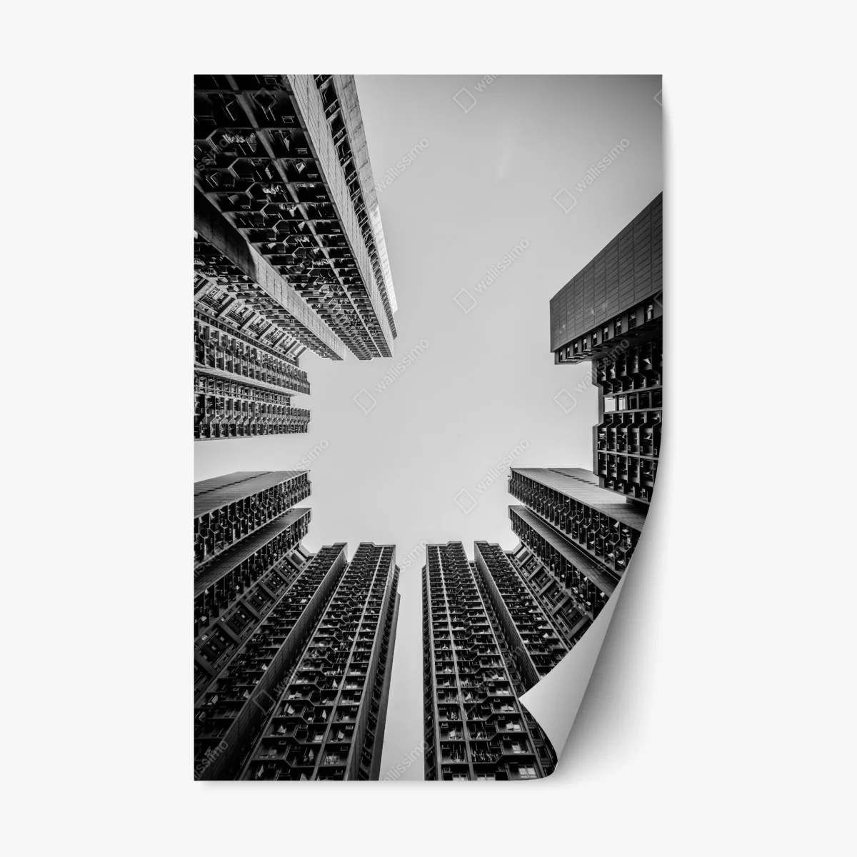 - bianco e nero, paesaggio urbano, minimalismo, grattacieli, architettura urbana, alto contrasto, città moderna, prospettiva verticale, geometrie, facciate
