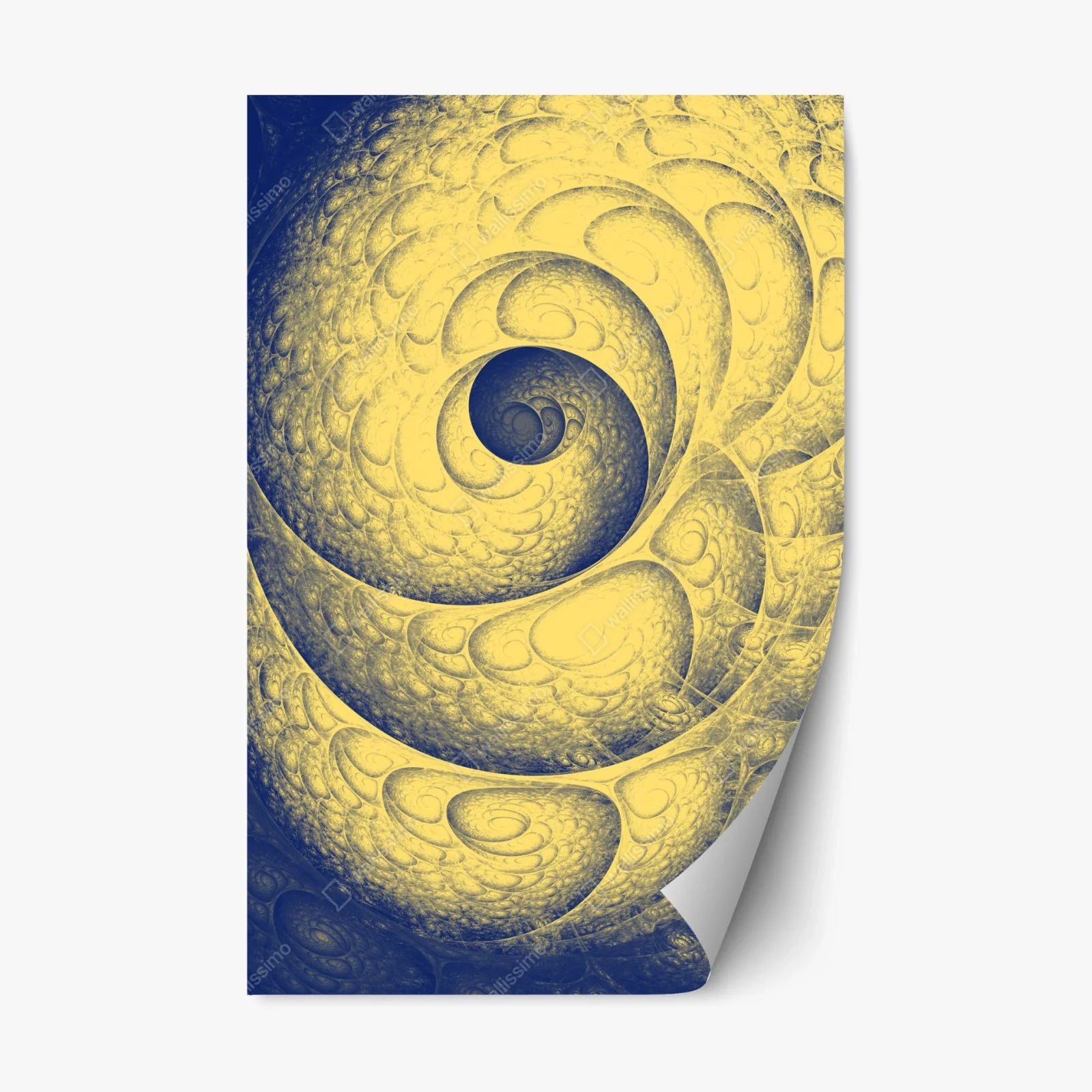 Adesivo riposizionabile Spirale frattale in giallo e blu
