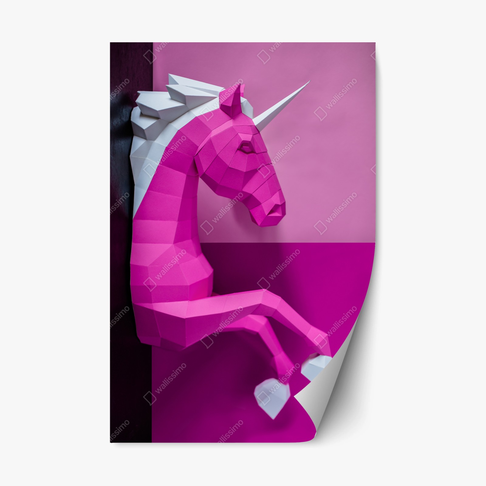 - design moderno, geometrico, rosa, arte murale, unicorno, fantasia, fucsia, scultura di carta, carta, decorazione per pareti
