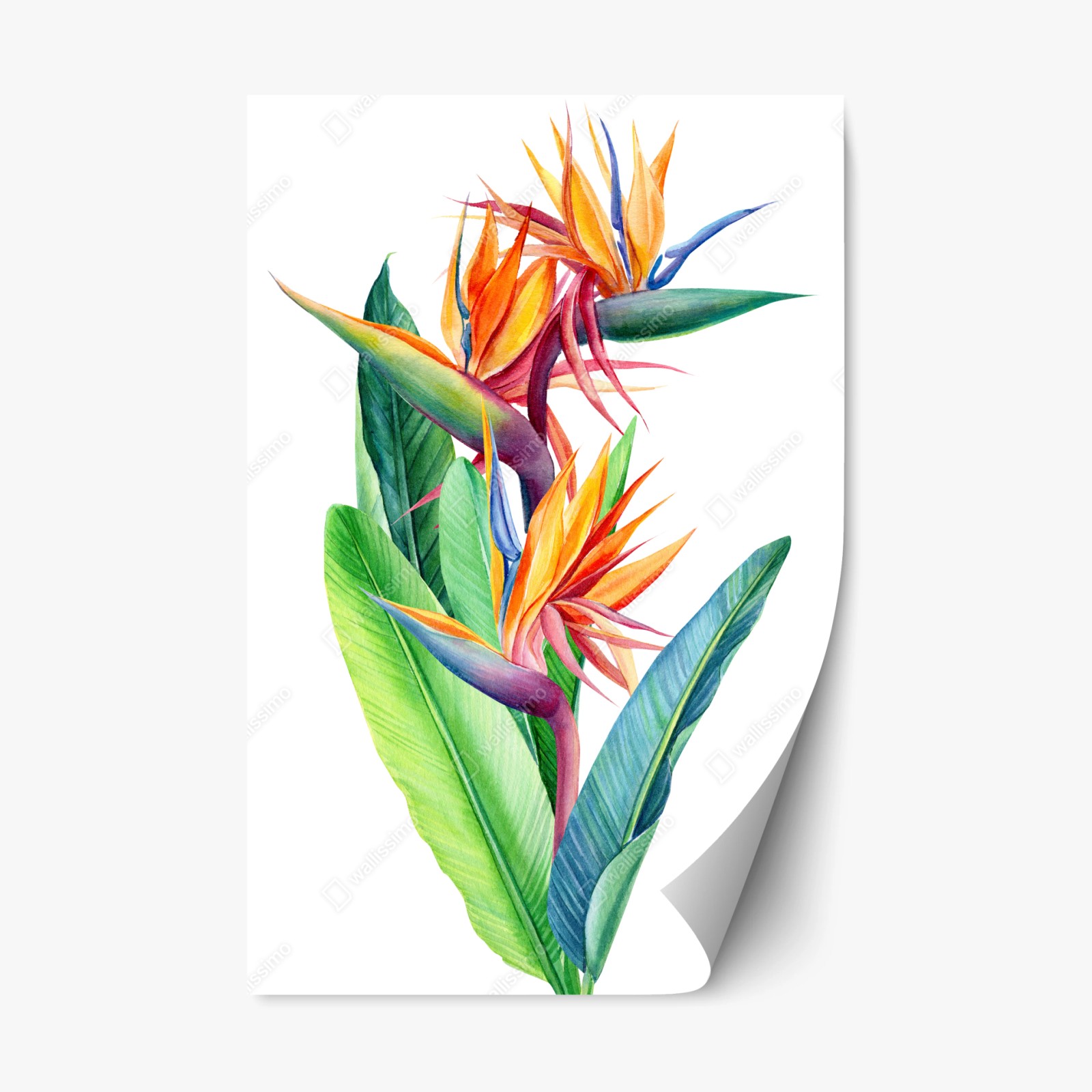 - natura, colori vivaci, foglie verdi, decorazione murale, esotico, illustrazione botanica, acquerello, fiori tropicali, strelitzia, uccello del paradiso