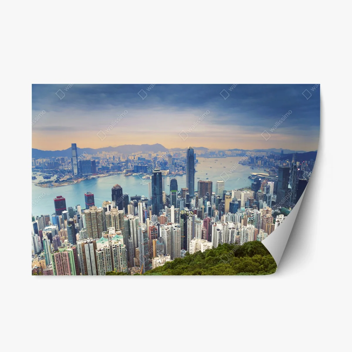 Adesivo riposizionabile Vista panoramica di Hong Kong al tramonto