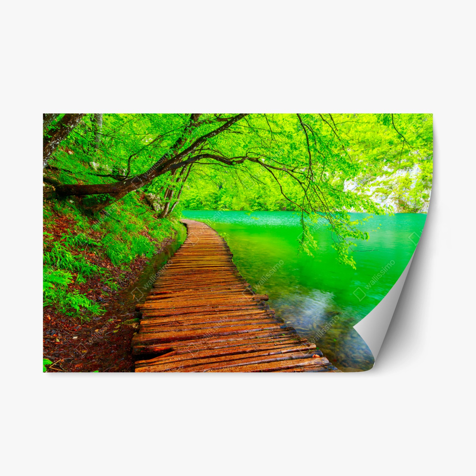 Adesivo riposizionabile Percorso in legno lungo il lago verde