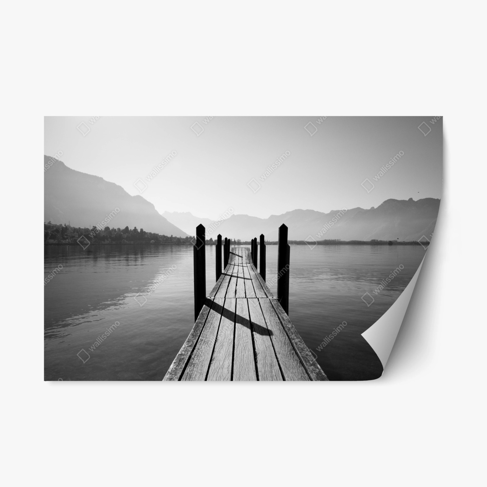 Adesivo riposizionabile Molo solitario sul lago tra le montagne in bianco e nero