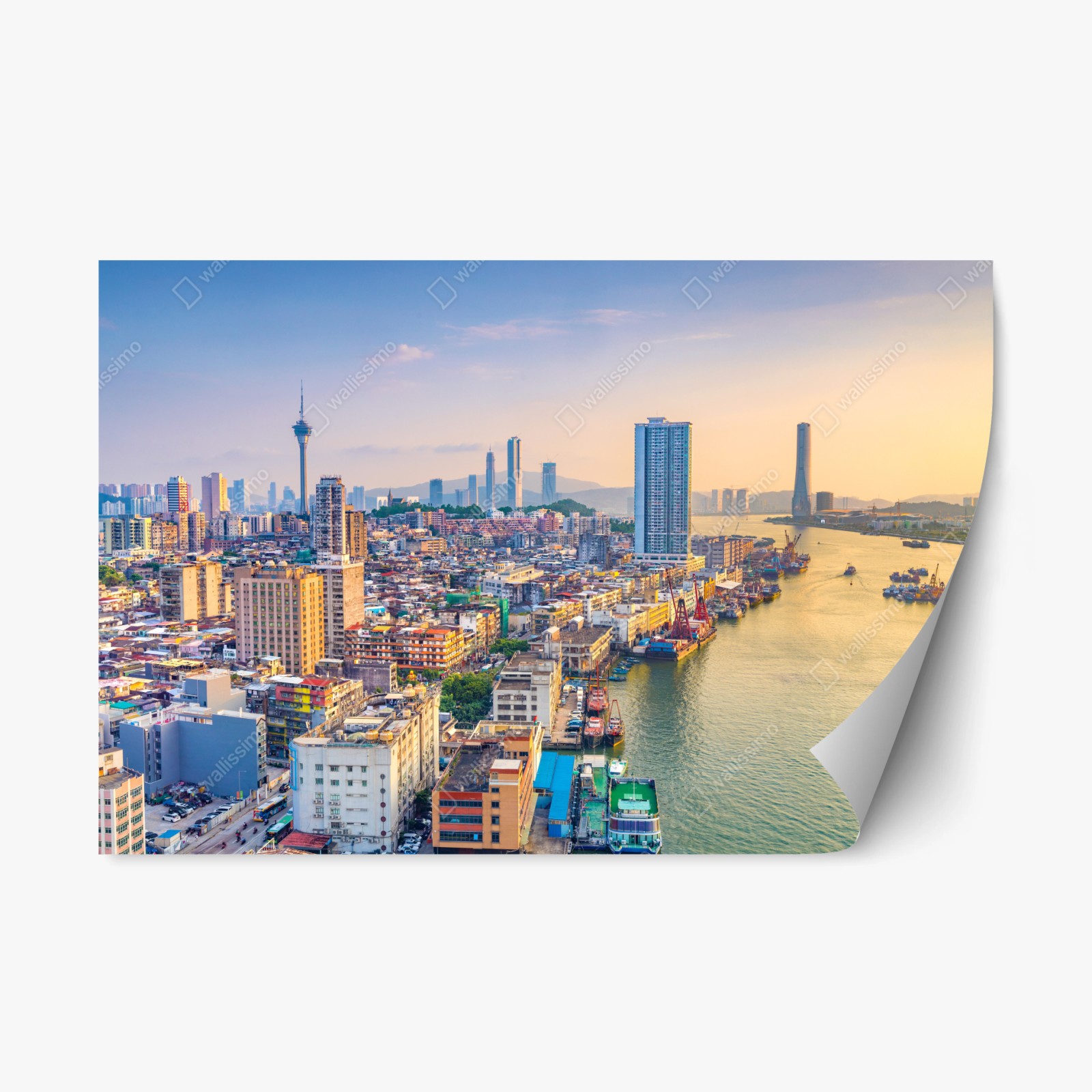 Adesivo riposizionabile Panorama urbano al tramonto di Macau