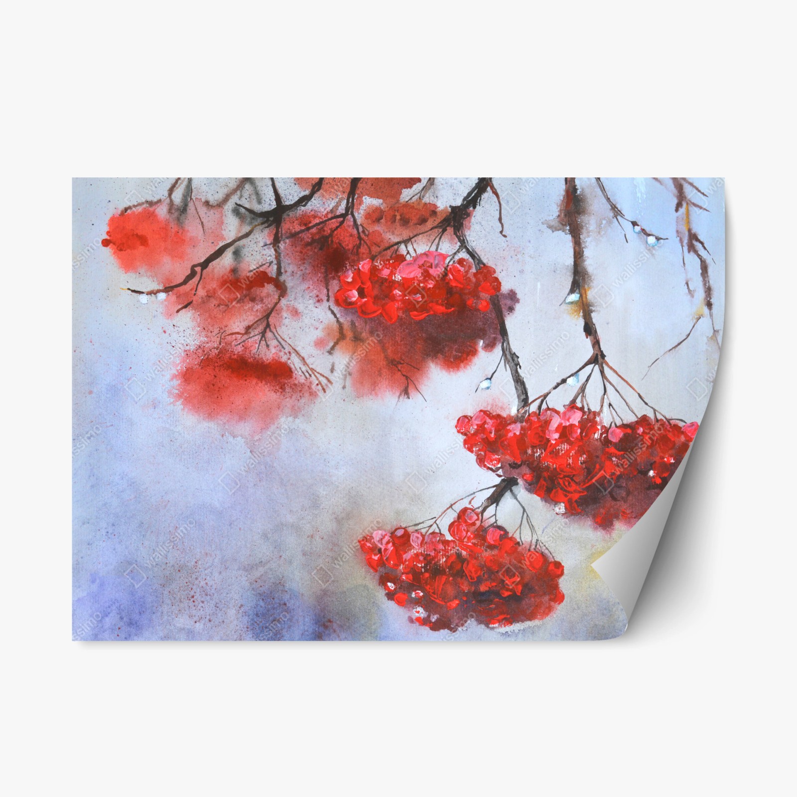Adesivo riposizionabile Rami di bacche rosse in acquerello