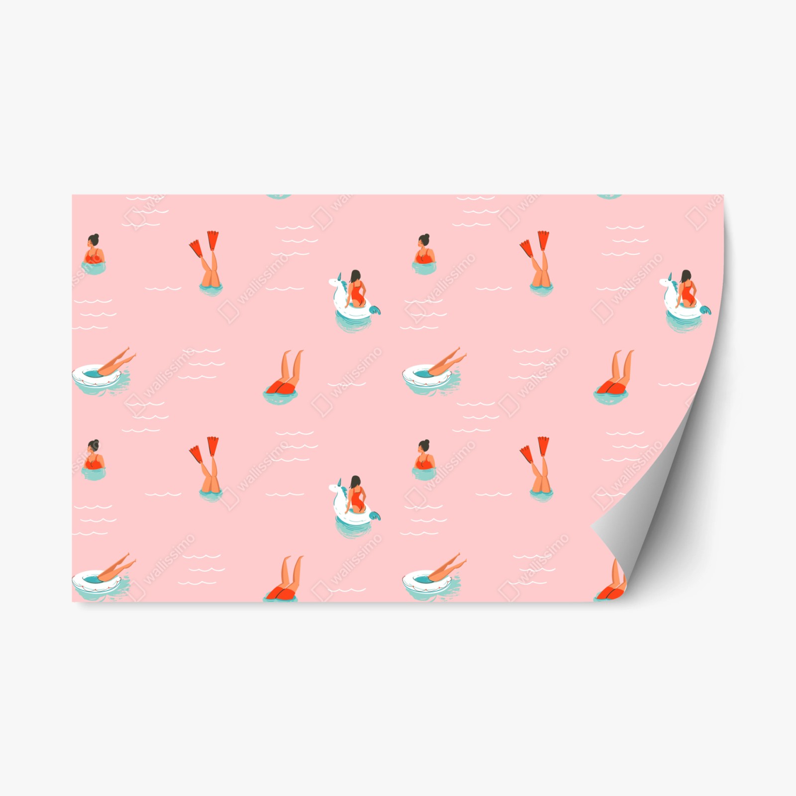 - vacanza, estate, piscina, divertimento, rosa pastello, motivo a ripetizione, ragazze, unicorno gonfiabile, ciambella, nuoto