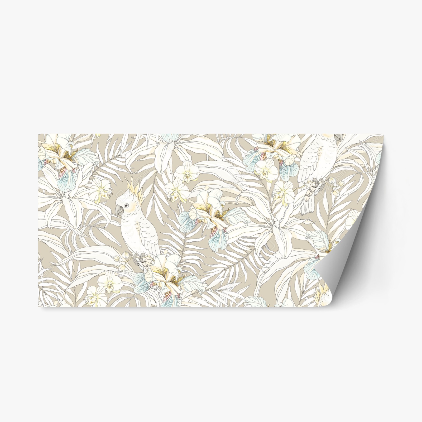 Adesivo riposizionabile Cacatua e orchidee in motivo tropicale pastello